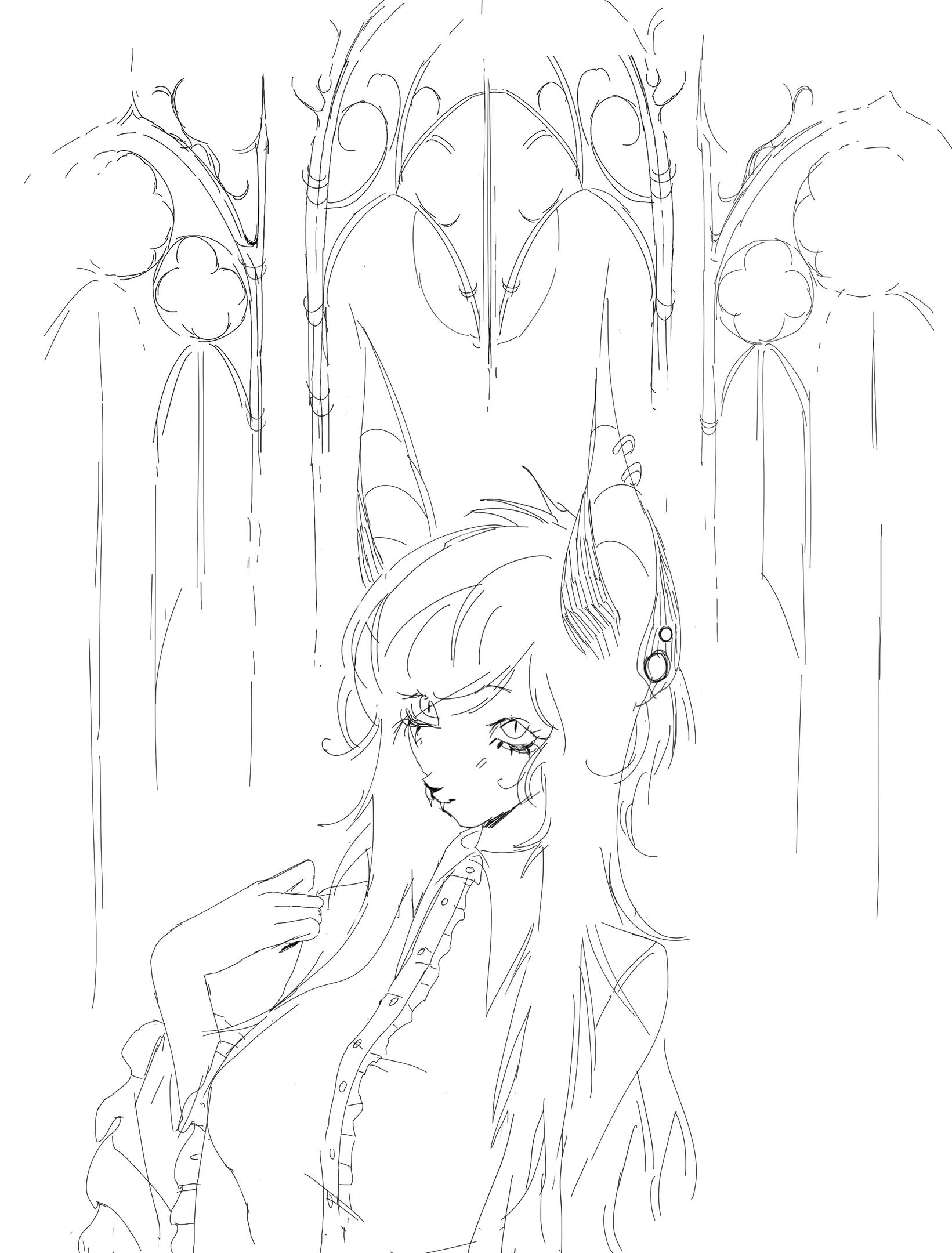 simple signature lineart style. no sketch stage.background scribble accents are optional.